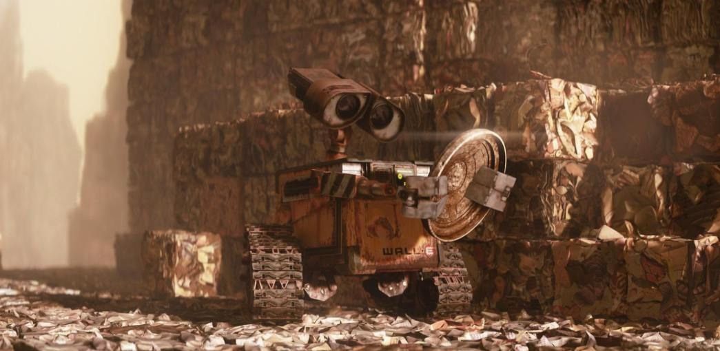 Маленький ВАЛЛ-И, единственный активный из всех оставленных трудяг, находит маленький росточек и бережно сохраняет его. В электронном уборщике за время работ зародилось подобие разума, потому он собирает всевозможные понравившиеся ему штучки из мусора и даже водит дружбу с тараканом.